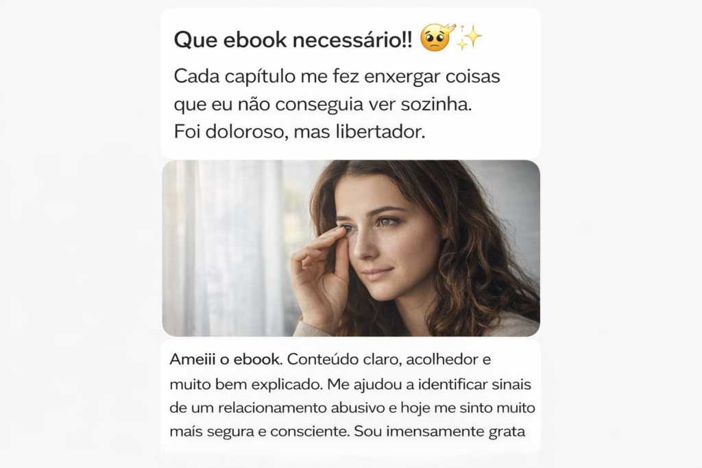 E se eu te contar que é possível reconhecer um relacionamento abusivo logo no início e sair dele com mais consciência, segurança e amor-próprio?