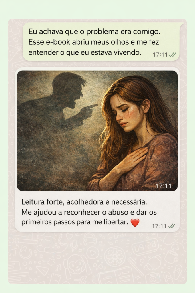 Mas garanto que você terá acesso aos sinais, padrões e verdades que eu e muitas mulheres precisaram aprender para reconhecer um relacionamento abusivo e encontrar força para se libertar.